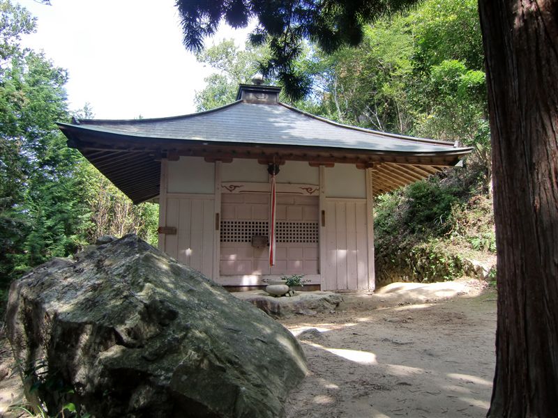11:00登山口を出発。大日如来の壁画のある岩を通り行者堂まで行く。前に大勢のグループがいるので、少し休憩しやりすごす。行者堂の前の大きな岩の下には弥勒菩薩と表示がしてあり、奥に石仏が祀ってあるが、これが弥勒菩薩像なのだろう。