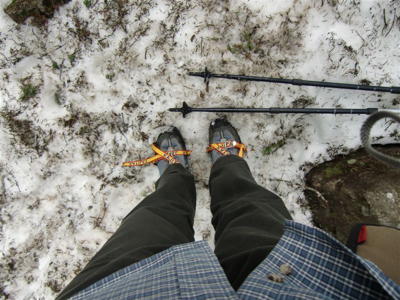 しばらく行くとやはり雪道になってきて、傾斜が急になったあたりでアイゼンを着けた。滑る心配がなく足を自由に運べるので、改めてアイゼンの威力を見直した次第である。