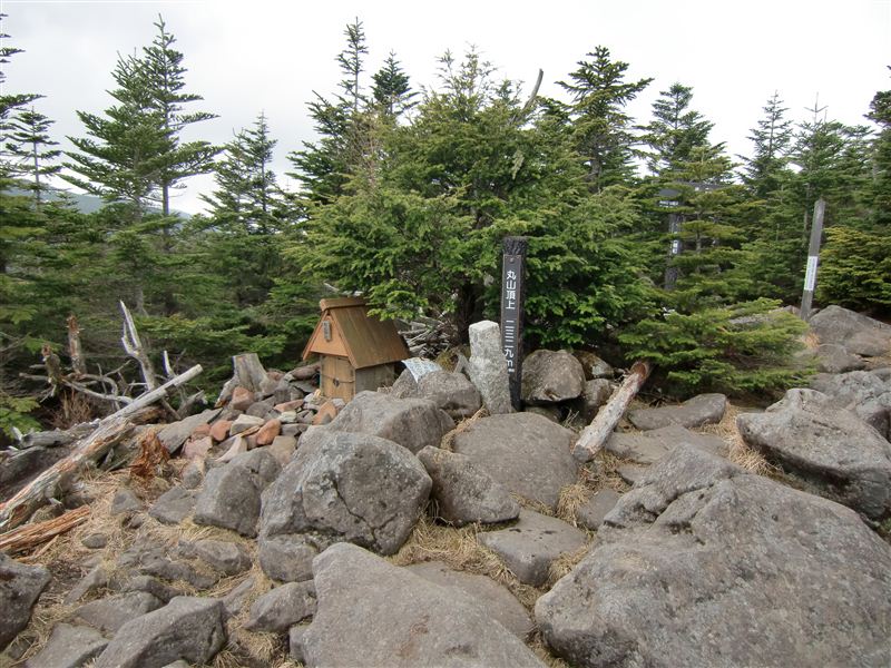 傾斜きつくなりアイゼン履く→10:12 丸山頂上 丸山神社→