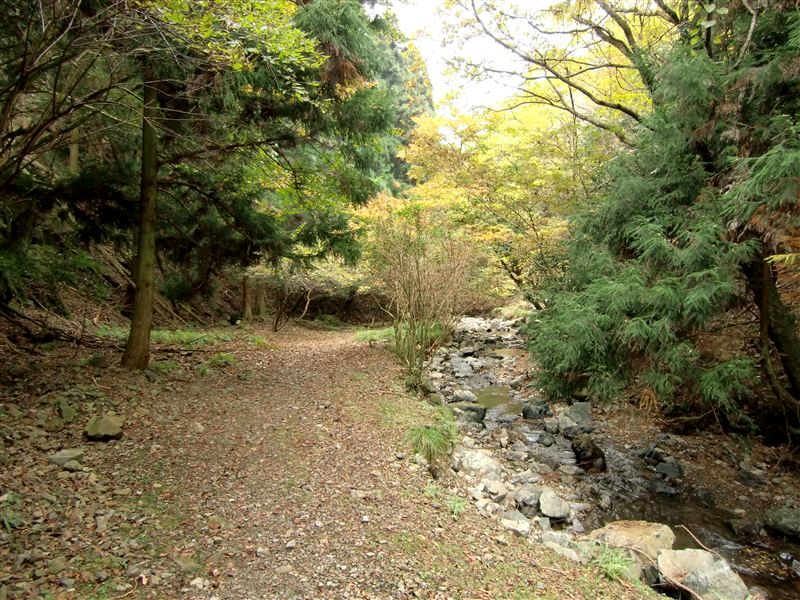 初谷は大阪みどりの100選に入っているのだが、とりわけ特徴のない普通の谷で、特に上流部はむしろ荒れていてとても綺麗とはいえない谷である。下っていった山麓あたりはまだましで、河原が広いところもありキャンプをする人もいるようである。駐車場から山麓まで約1時間40分かかった。