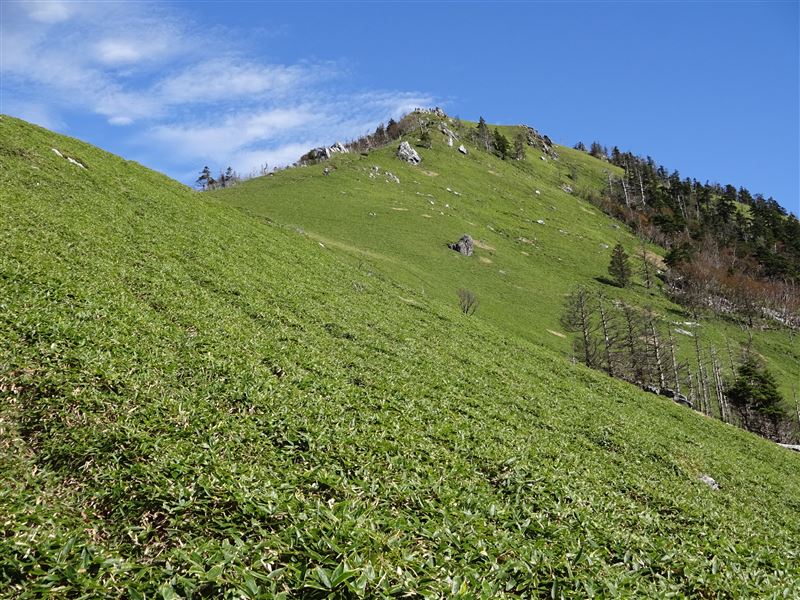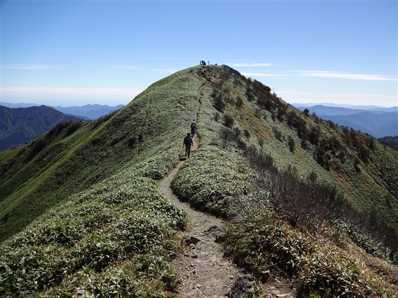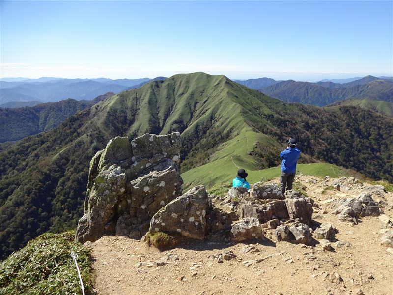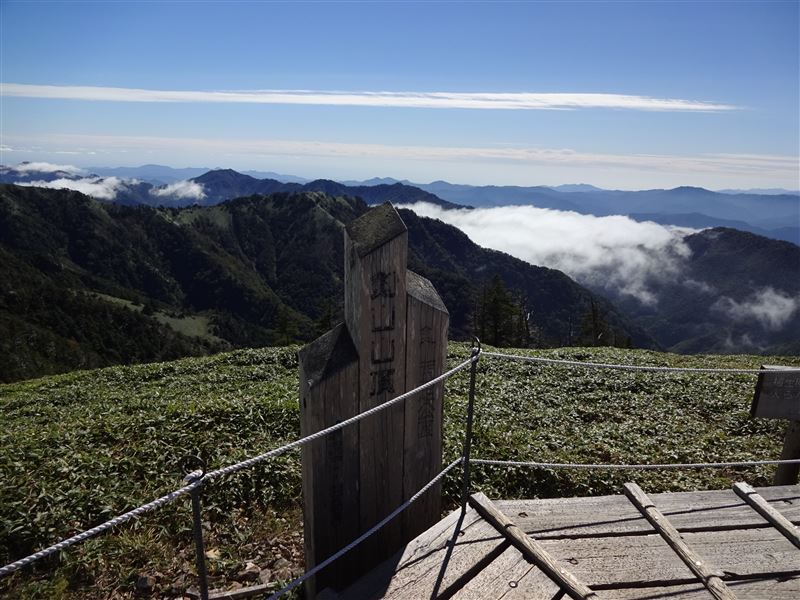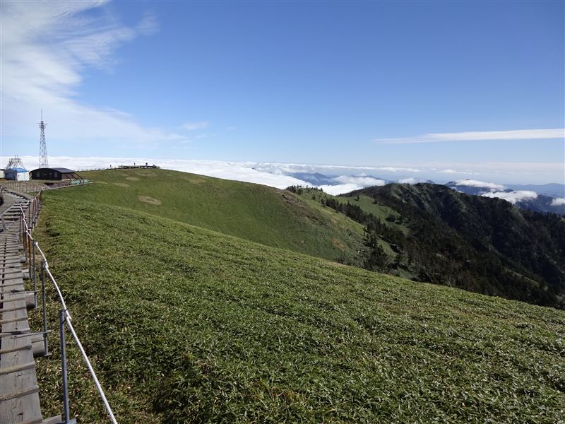 リフト頂上の西島駅に着く。標高は1,750m。なんと上は雲の上で晴れている!下の方は雲の中なので霧雨だったが雲を突き抜けて上に出るとすばらしい天気になったのだ。目の前には雲海が広がっている。