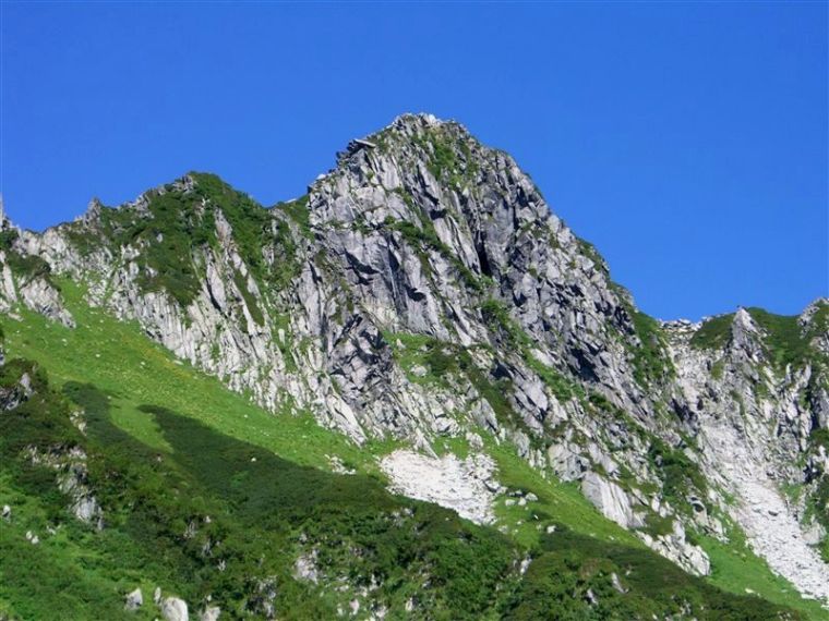 宝剣岳は縦走路上のいわば突起のような山であるが、その特異な岩峰は存在感十分である。