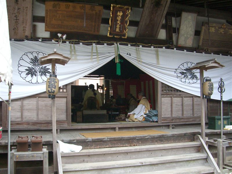瀧安寺の本堂前に建つ行者堂の中では、修験道の寺らしく山伏姿の行者さんが何人も詰めてお経をあげていた。この寺は役行者が開いたその道では非常に有名な寺である。