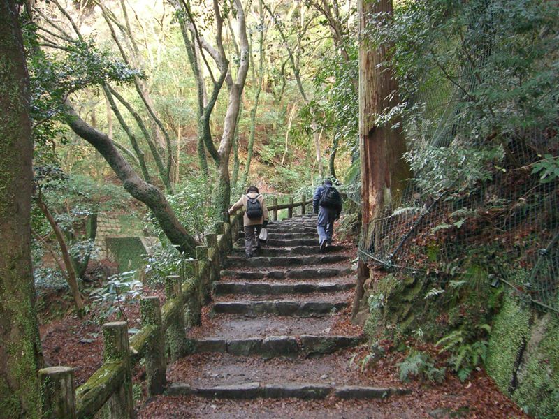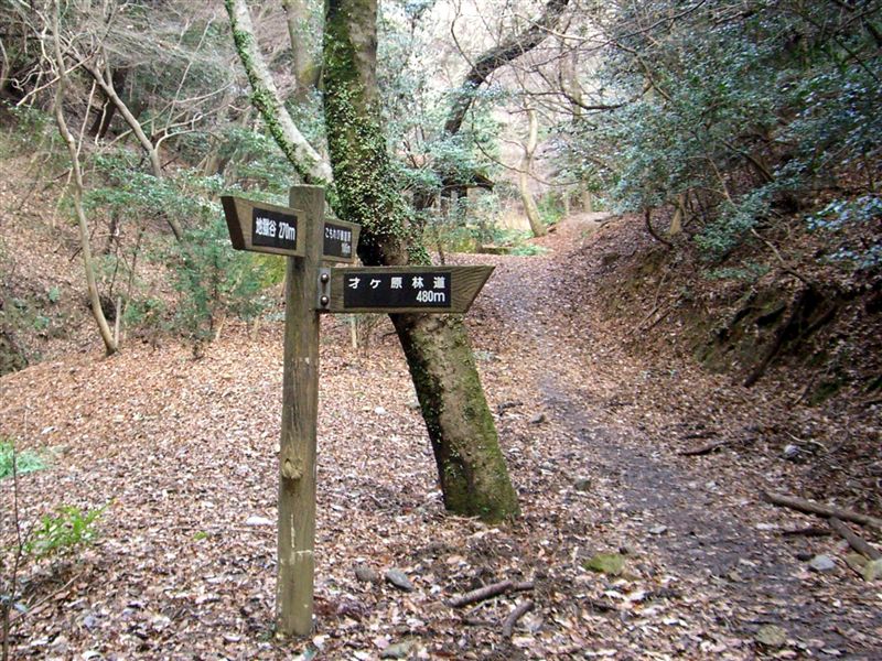 瀧安寺から少し歩き、姫岩から地獄谷へと道をとり急な階段の遊歩道を20分ほど登る。