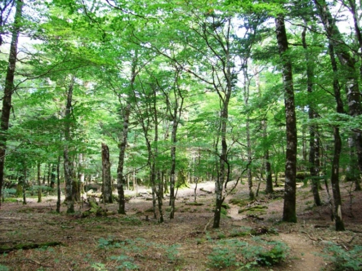 | ひっそりとした森の中を独り静かに歩く。 |