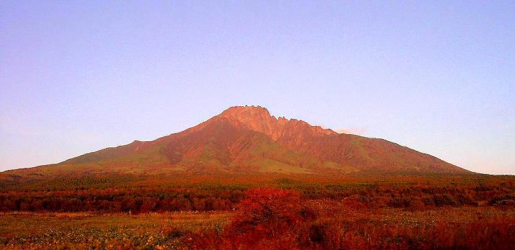 夕焼けに染まる利尻富士