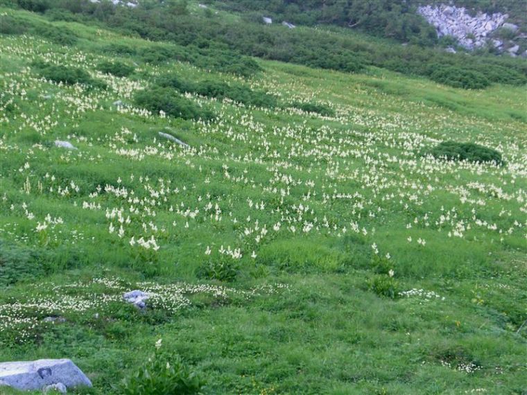 千畳敷下部 回遊コースのお花畑 チングルマとコバイケイソウ群落