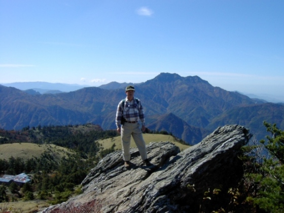 石鎚山を望む。 左下にヒュッテ。