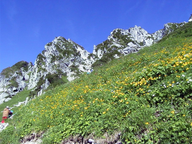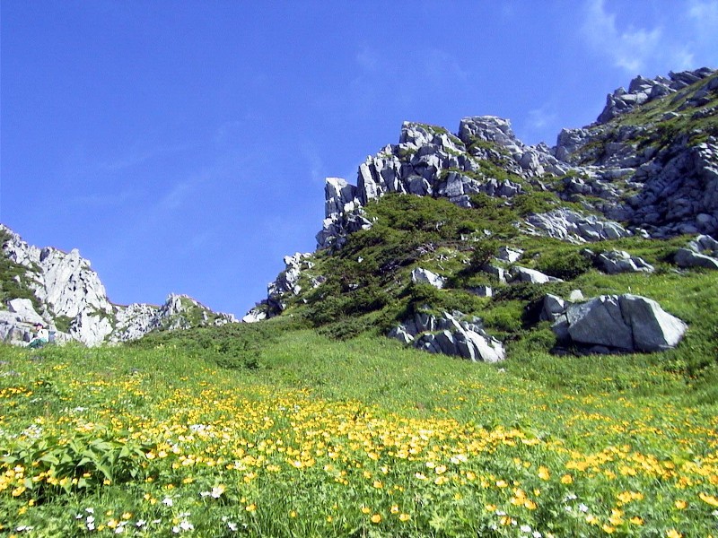 最盛期に当たり天候に恵まれれば、千畳敷カールのお花畑は素晴らしい光景を見せてくれる。